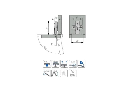 Balama aplicata FCHC soft-close, Clip-On, placuta in cruce inclusa.