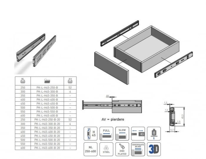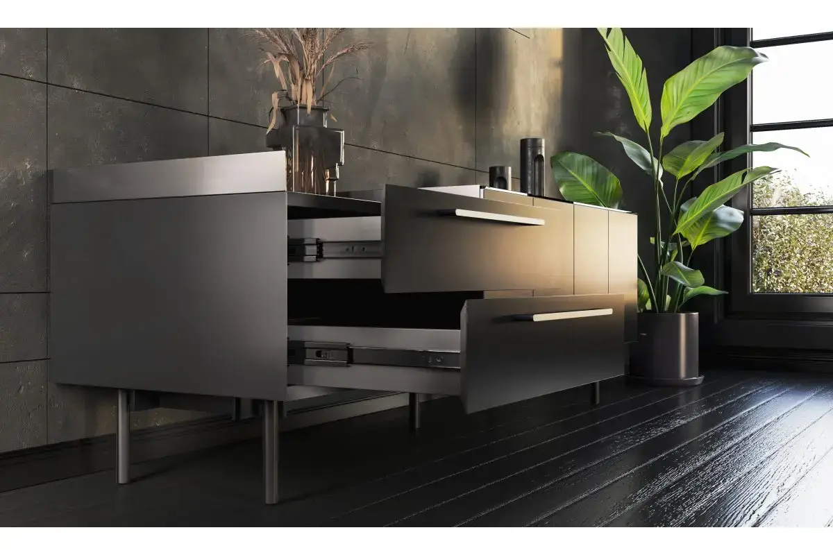 Glisierele Versalite Plus+ oferă durabilitate dovedită – certificat SGS pentru 80.000 de cicluri. Extensia completă permite accesul la toată adâncimea sertarului, iar mecanismul de închidere moale afectează perfect confortul și ergonomia în orice moment al zilei.