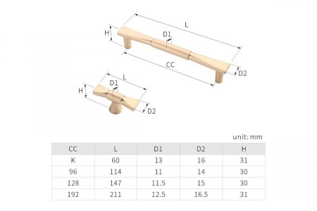 Buton mobila FIRENZE brushed gold.